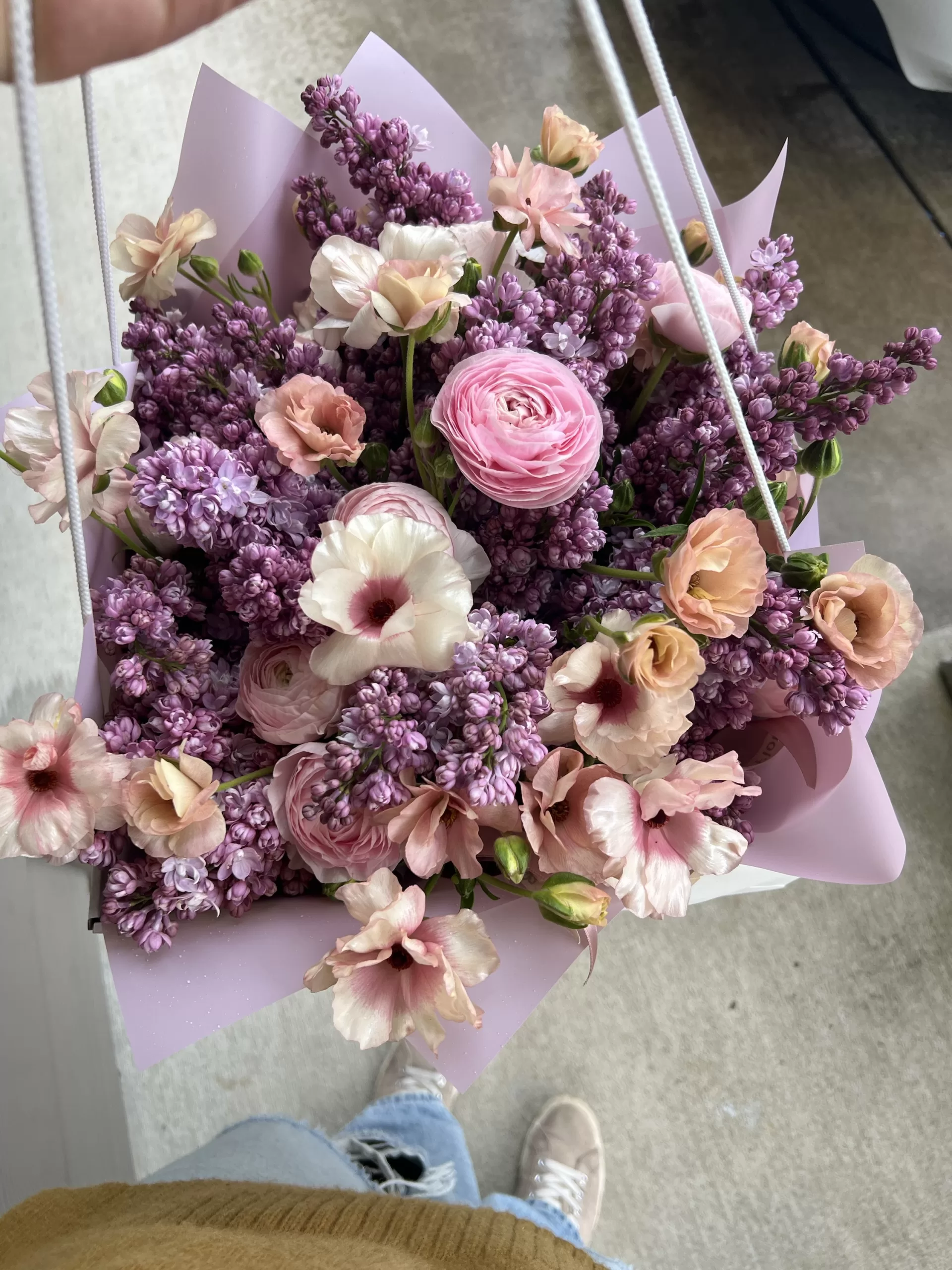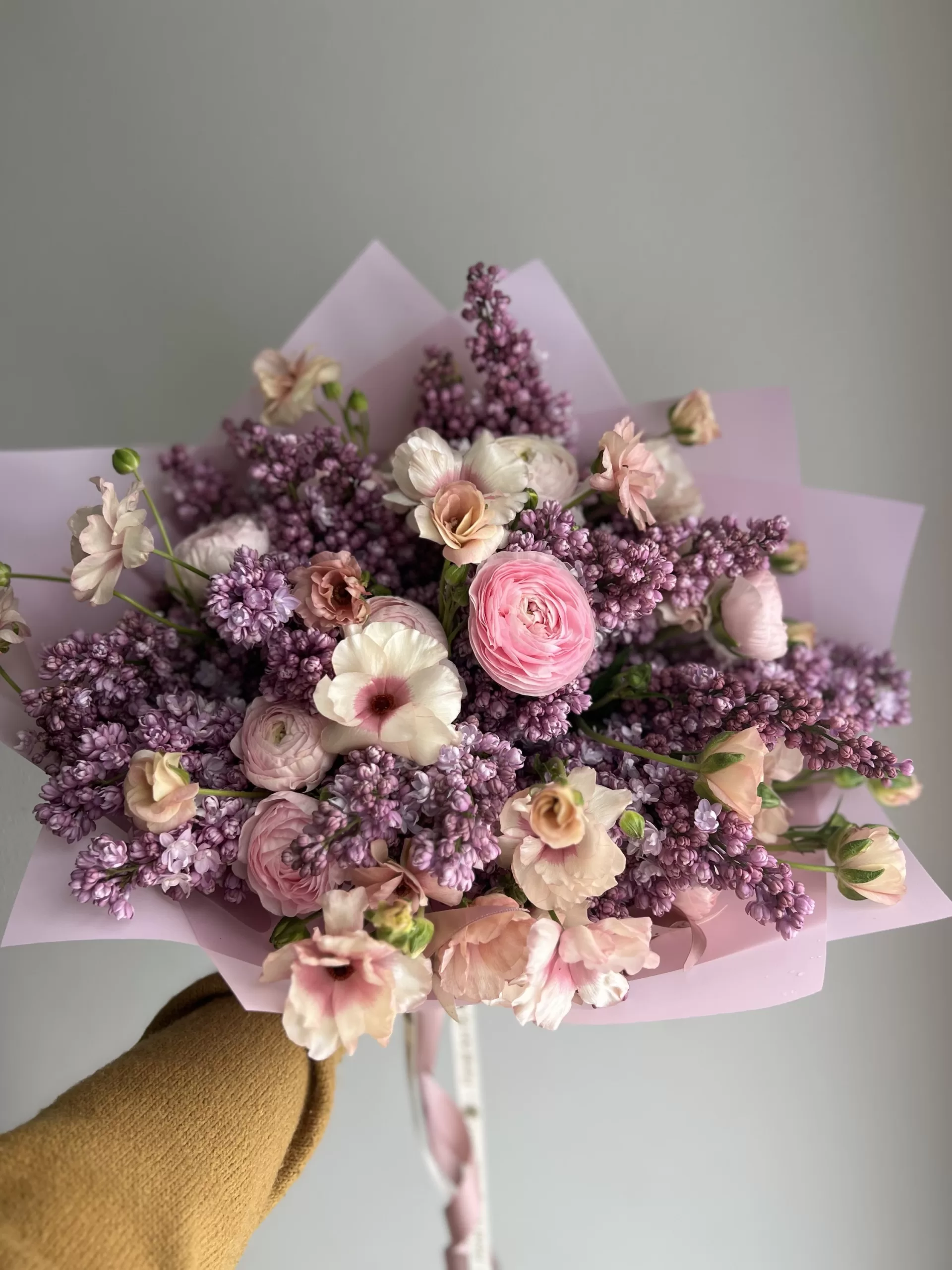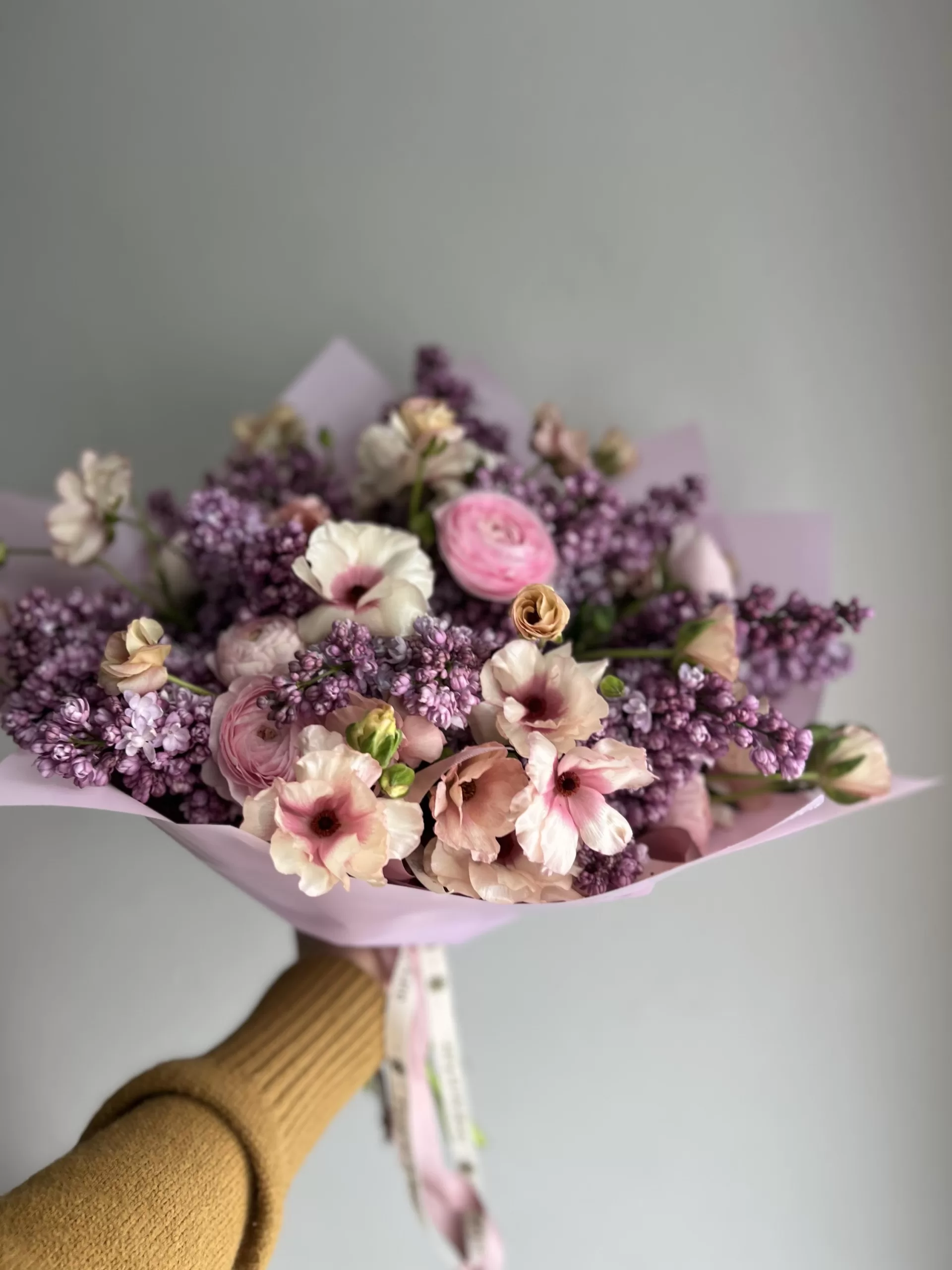 A delicate and touching, just perfect flower combination – lilac, Ranunculus and Ranunculus Butterfly. It is a wonderful flower bouquet to celebrate any occasion – birthdays, anniversaries, corporate promotions and more.