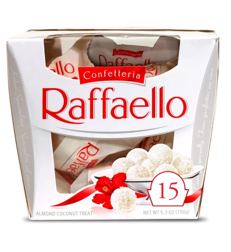 Raffaello almond coconut candy, 15- count gift box , decadent almond, coconut and white chocolate confections. (5.3oz/150g)