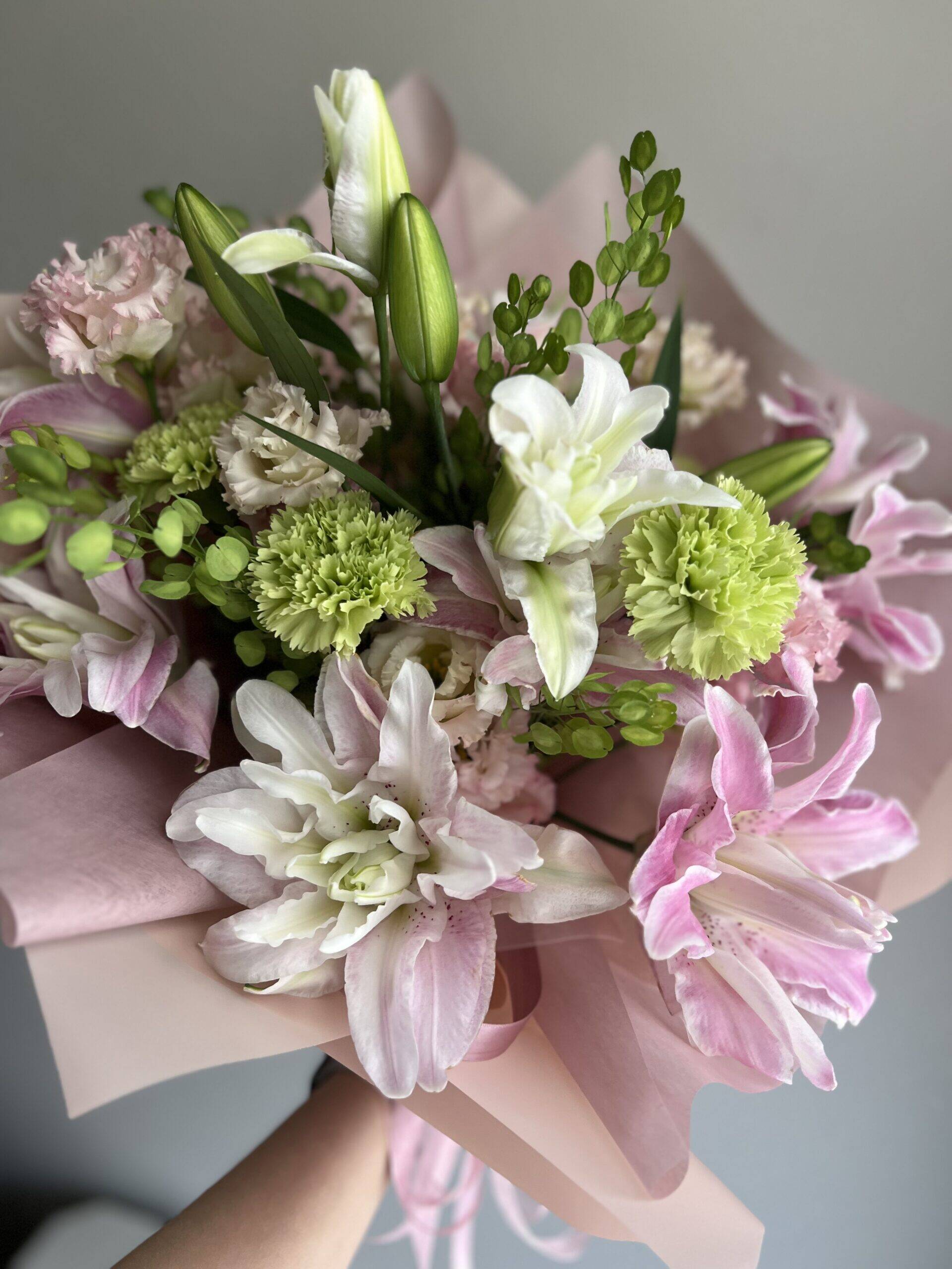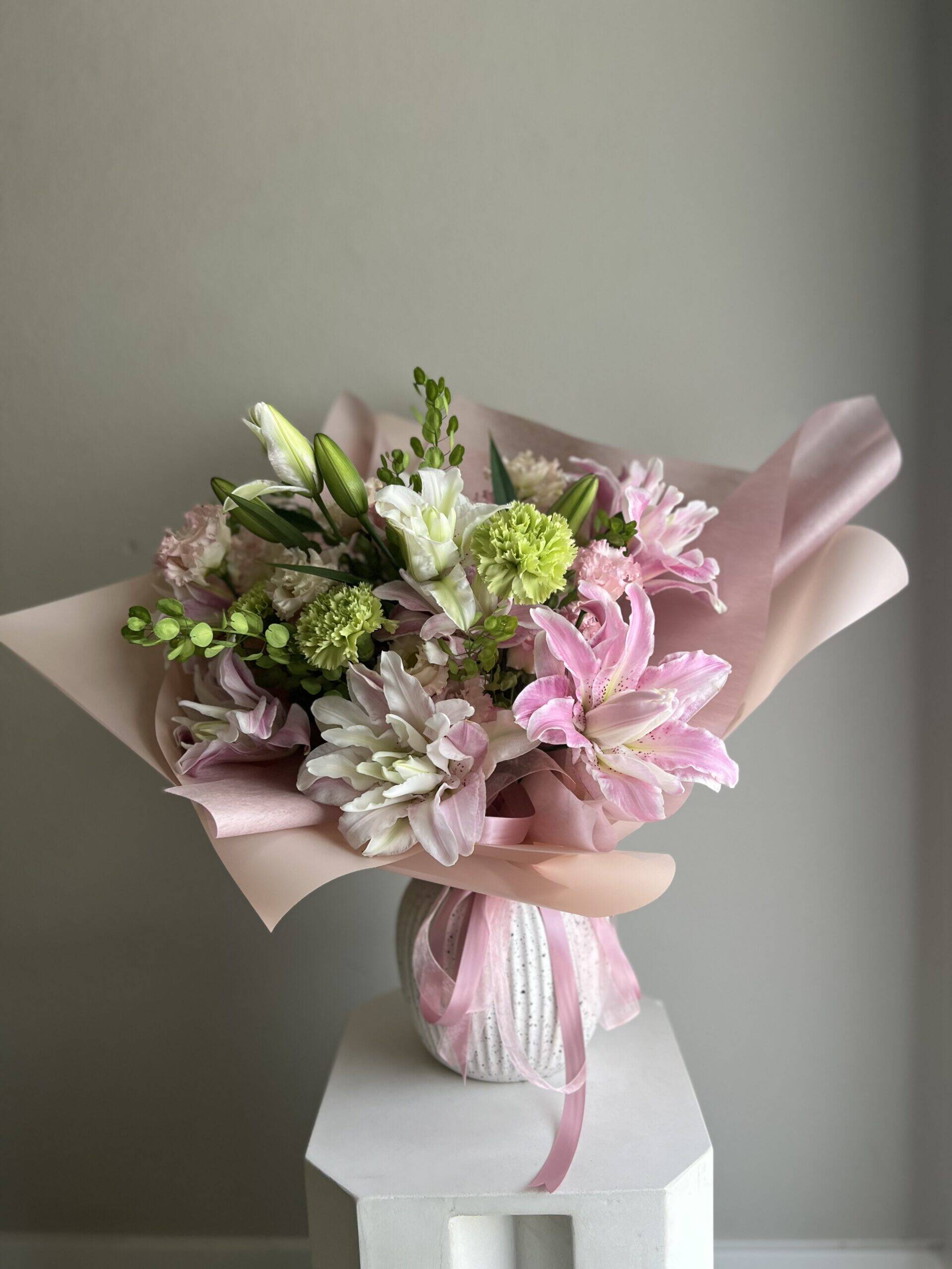 This exquisite arrangement features stunning lilies in soft, pastel tones, creating a serene and sophisticated display. Perfect for any occasion, from weddings to anniversaries, this bouquet brings a touch of grace and tranquility to any setting. Each bloom is selected to ensure the highest quality and freshness. Let the gentle hues and elegant lilies express your sentiments with timeless charm. Order your Scented Lilies Bouquet today and bring a touch of elegance to your loved one’s day.