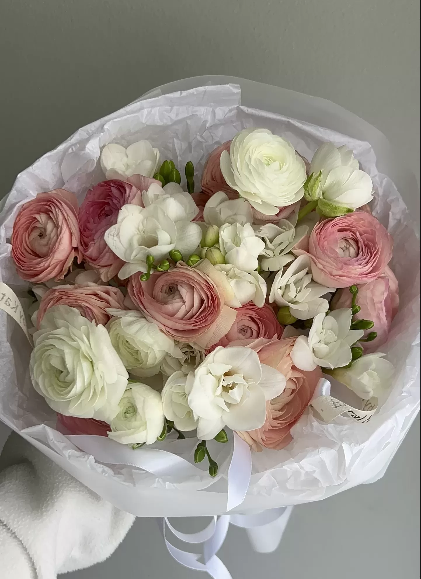 A delicate and touching, just perfect flower combination – ranunculus and freesia. It is a wonderful flower bouquet to celebrate any occasion – birthdays, anniversaries, corporate promotions and more. Order this flower delivery today.